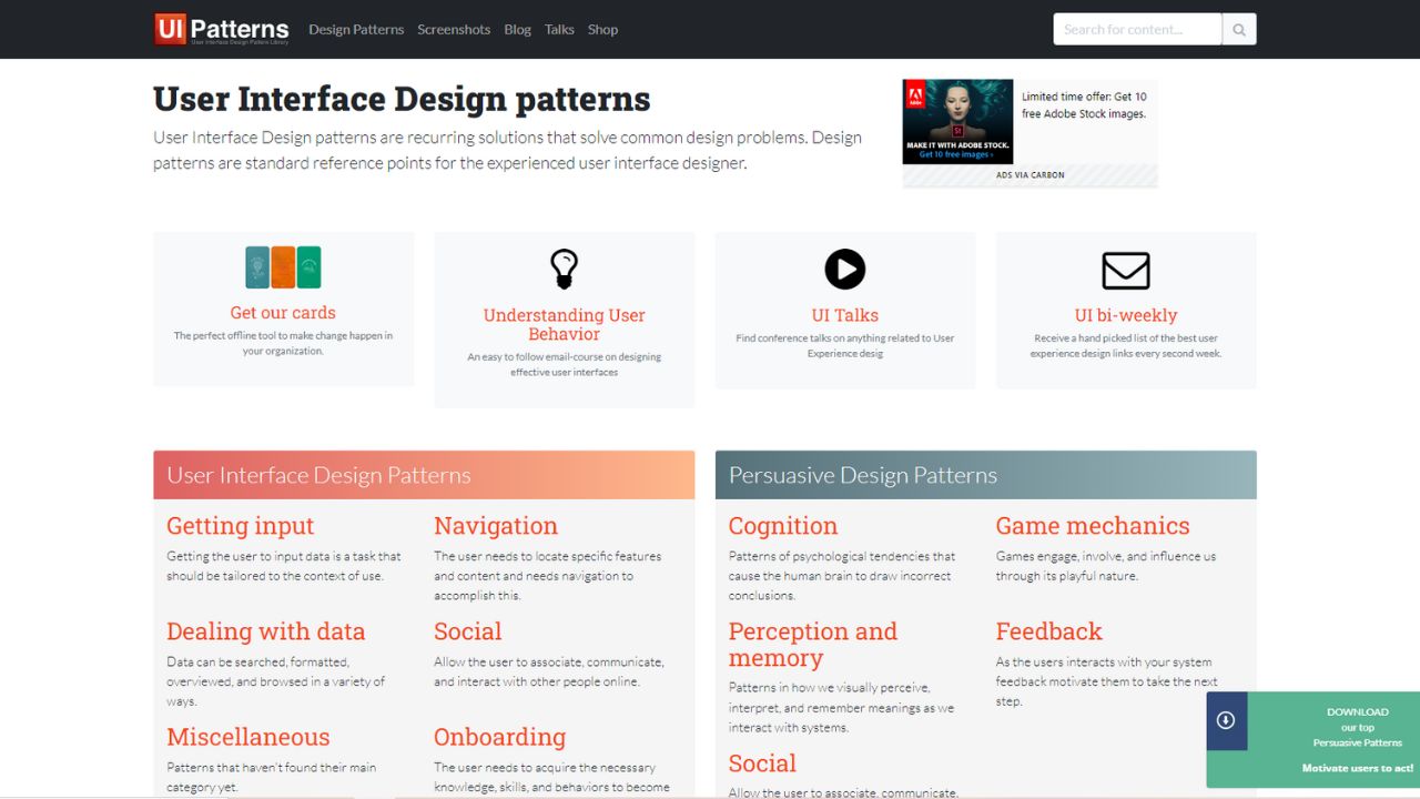 User Interface Design patterns are recurring solutions that solve common design problems. Design patterns are standard reference points for the experienced user interface designer.